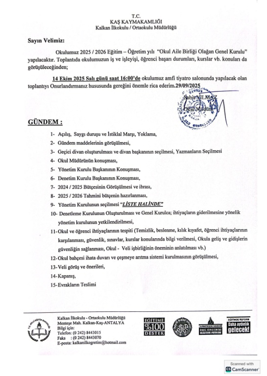 14 Ekim 2025 Salı günü saat 16:00'da okulumuz amfi tiyatro salonunda Okul Aile Birliği Olağan Genel Kurulu yapılacaktır.